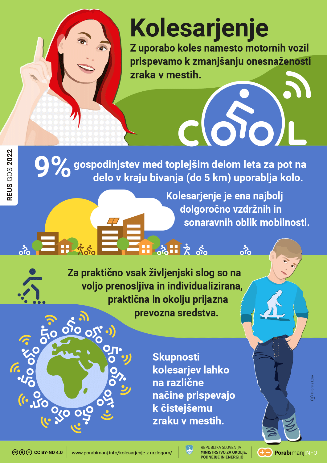 Slaba desetina anketiranih slovenskih gospodinjstev v toplejšem delu leta uporablja kolo za pot na delo v kraju bivanja (do 5 km).